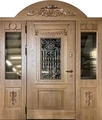 Парадная дверь массив с ковкой и резьбой
