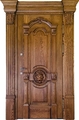 Дверь с массивом, ковкой и стеклом, резьбой, карнизом
