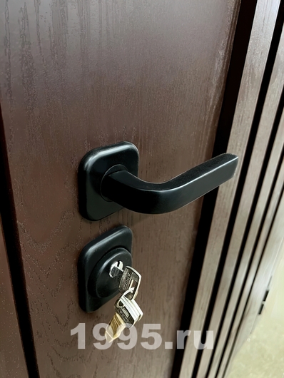 Квартирная дверь с черной ручкой
