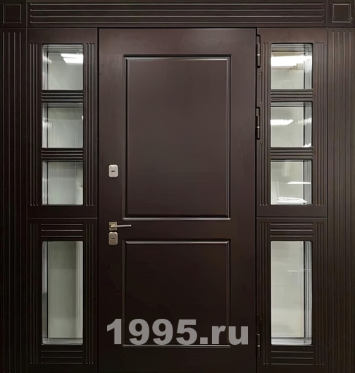 Двустворчатая стальная дверь с наборным МДФ окрас по RAL