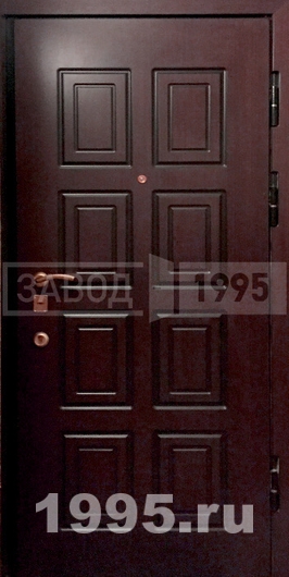 Под отделкой скрыта прочная стальная конструкция, изготовленная на современном оборудовании из холоднокатаной стали толщиной 2 мм. Качественные сувальдный и цилиндровый замки гарантируют безопасность и взломостойкость.