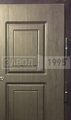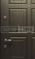 Для отделки металлических дверей использовано сочетание панелей МДФ и искусственной кожи. Один материал заменяет натуральное дерево, другой – натуральную кожу. Оба вида отделки отлично походят для облицовки такого изделия, как входная конструкция, так как они практичны, некапризны в уходе, недорого стоят. И винилискожа, и МДФ рассчитаны на длительный срок службы. Для внутренней стороны использована гладкая кожа, для внешней стороны применены панели с объемным рисунком. Представленная модель исполнена в классическом черном цвете, однако при желании можно выбрать другие варианты рисунка и расцветки.