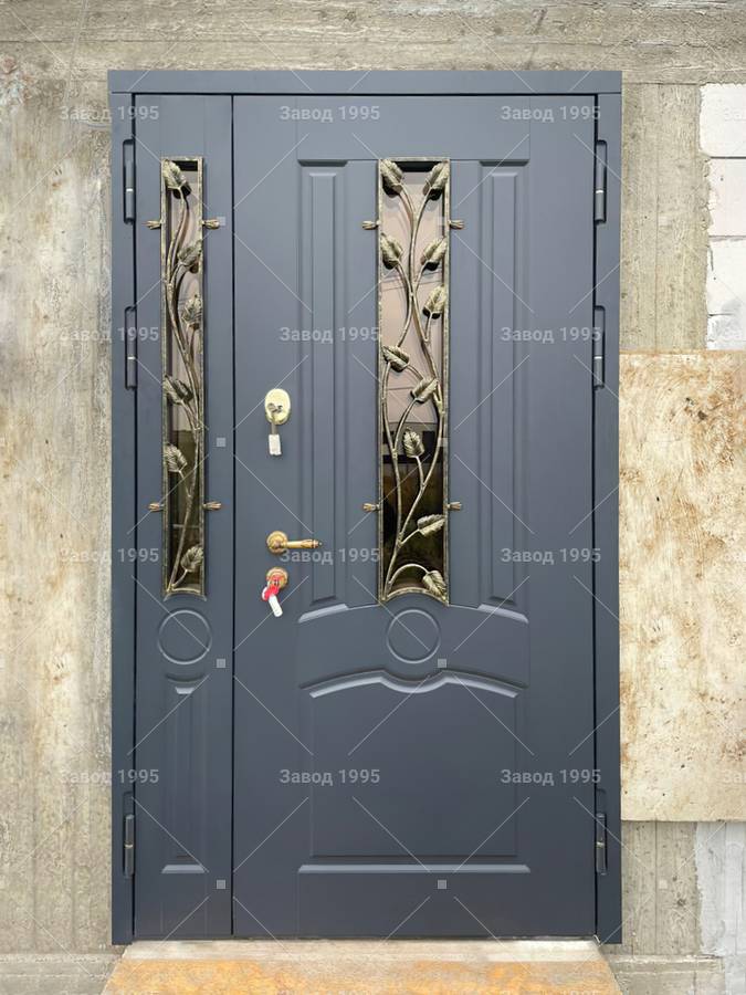 Дверь с ковкой, стеклопакетом и декоративными элементами