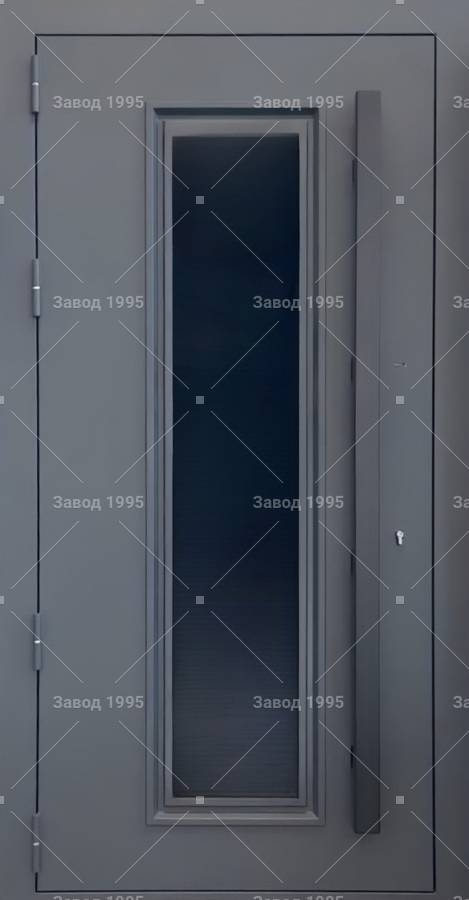 Входная дверь с порошковым напылением, стеклом и бугельной ручкой (терморазрыв)
