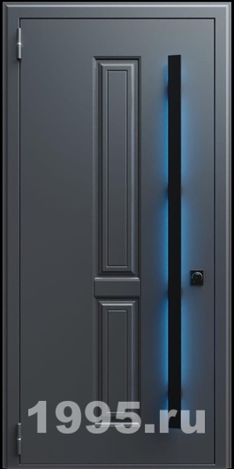 Стальная дверь с металлофиленкой, длинной ручкой с подсветкой и темно-серым порошковым окрашиванием RAL 7021 (тип №11)