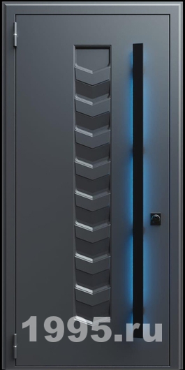 Стальная дверь с металлофиленкой, длинной ручкой с подсветкой и темно-серым порошковым окрашиванием RAL 7021 (тип №4)