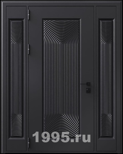 Стальная дверь с металлофиленкой, вставками по бокам и порошковым окрашиванием RAL 9004 (тип №11)