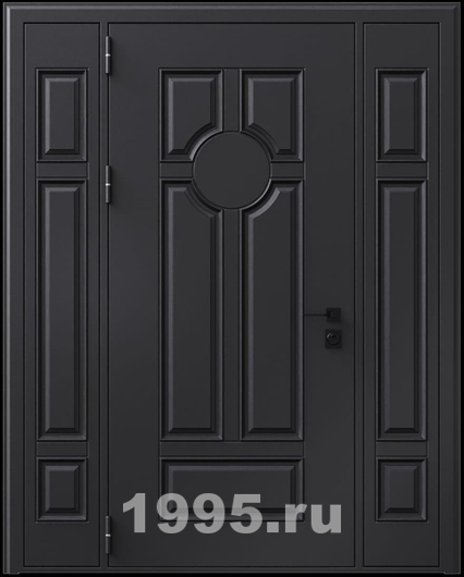 Стальная дверь с металлофиленкой, вставками по бокам и порошковым окрашиванием RAL 9004 (тип №3)