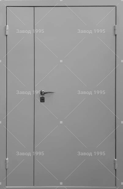 Дверь изготовлена из стального листа толщиной 2 мм, антивандальное порошковое покрытие с двух сторон обеспечивает надежную защиту от воздействия внешней среды. Установлено четыре петли диаметром 20 мм и два врезных замка, в дверной блок монтируются противосъемные блокираторы. Модель подойдет для установки в технических помещениях или в качестве тамбурной двери.