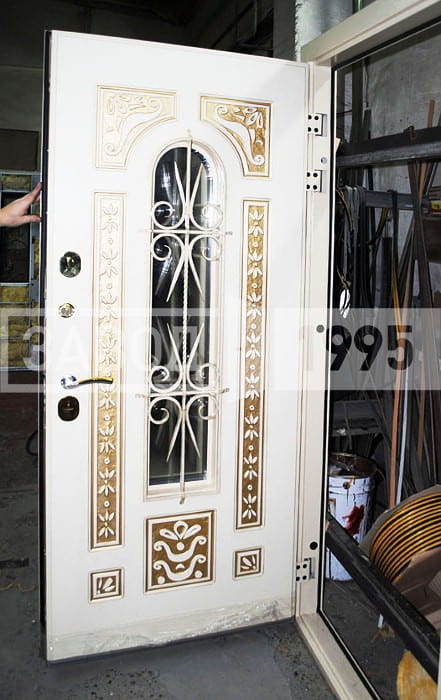 Производство эксклюзивной белой двери с ковкой и стеклом